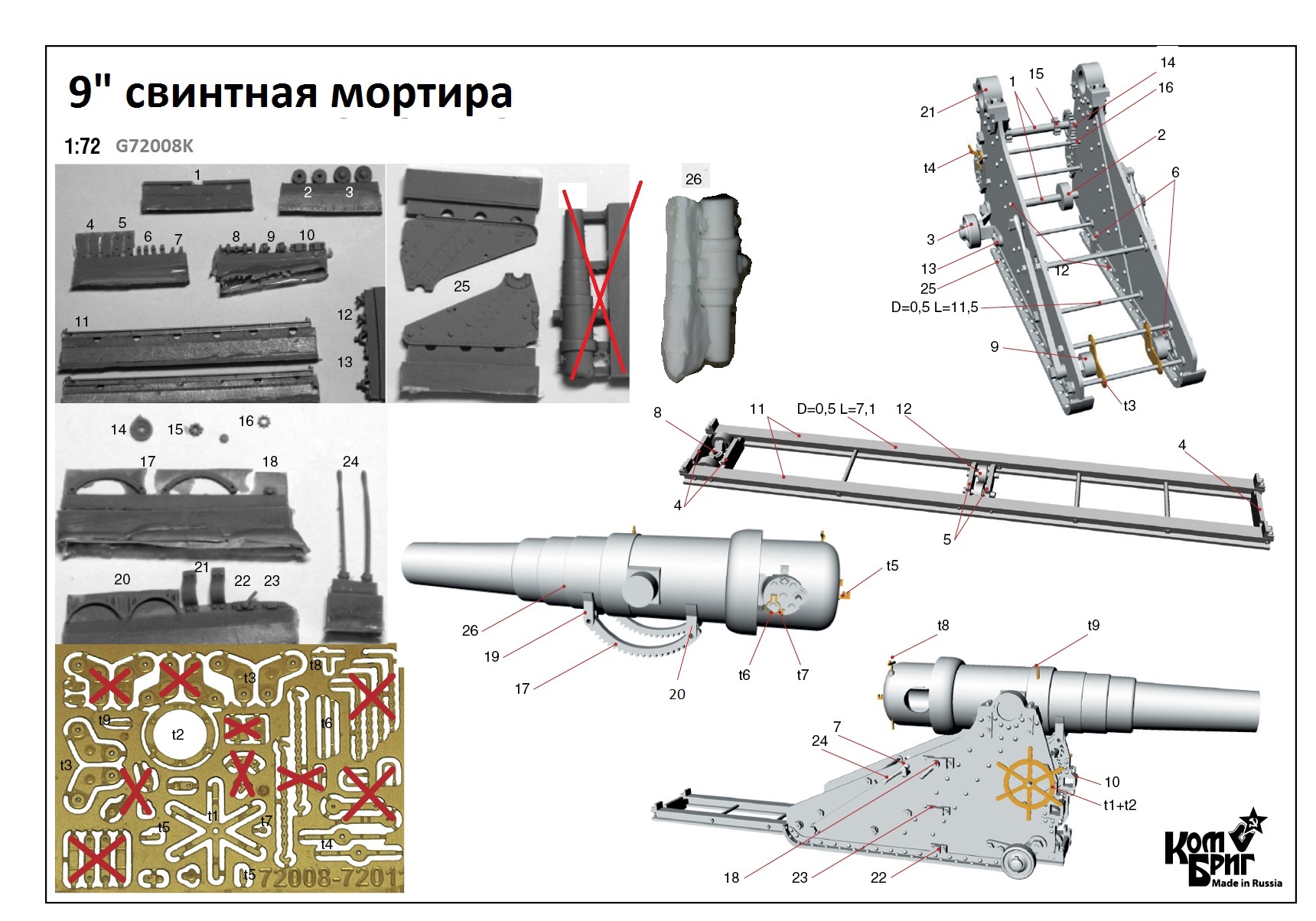 G72008K - Russian 9" Dismountable Mortar Model 1877, 1/72
