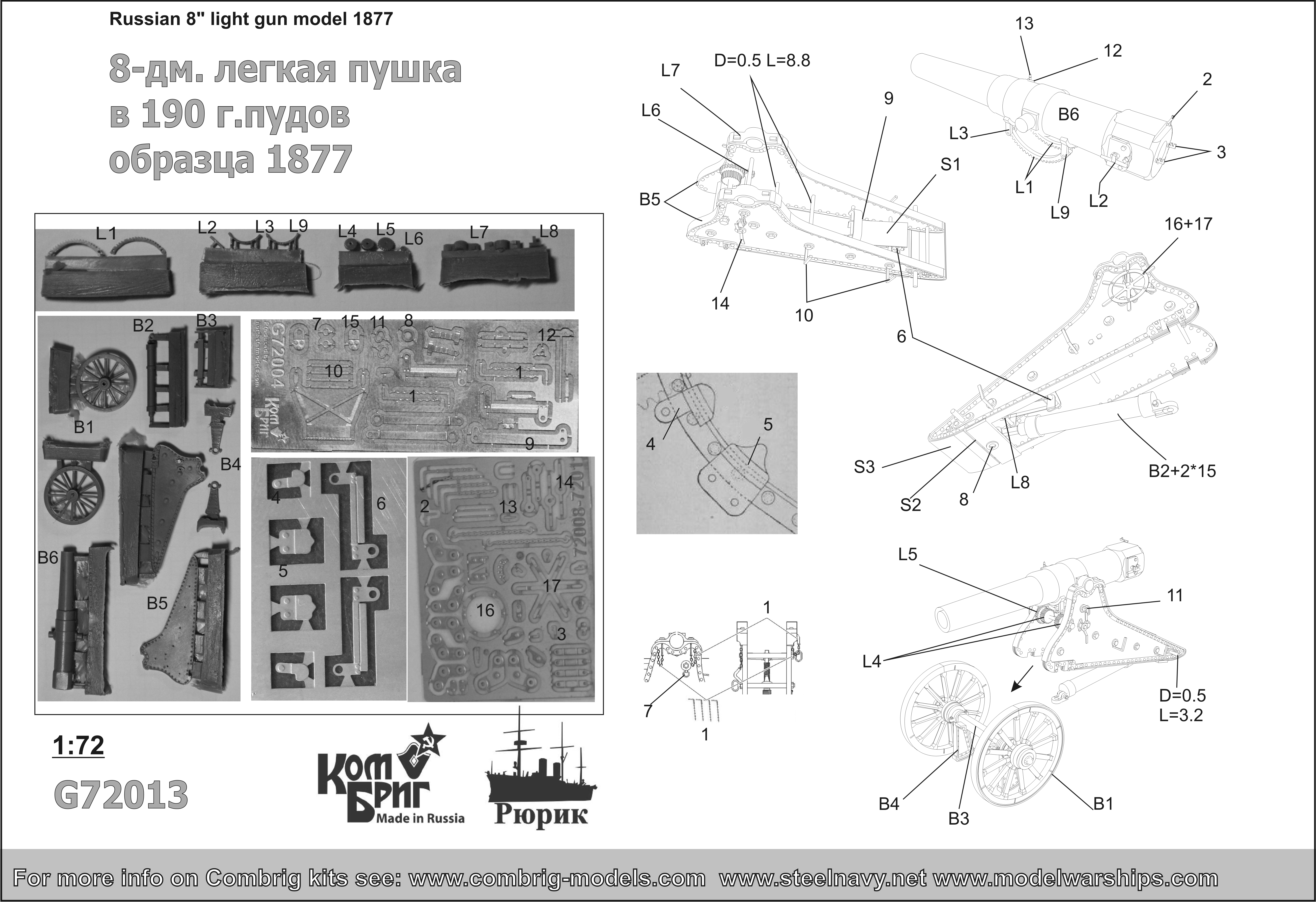 G72013 - Russian 8" Light Gun Model 1877, 1/72